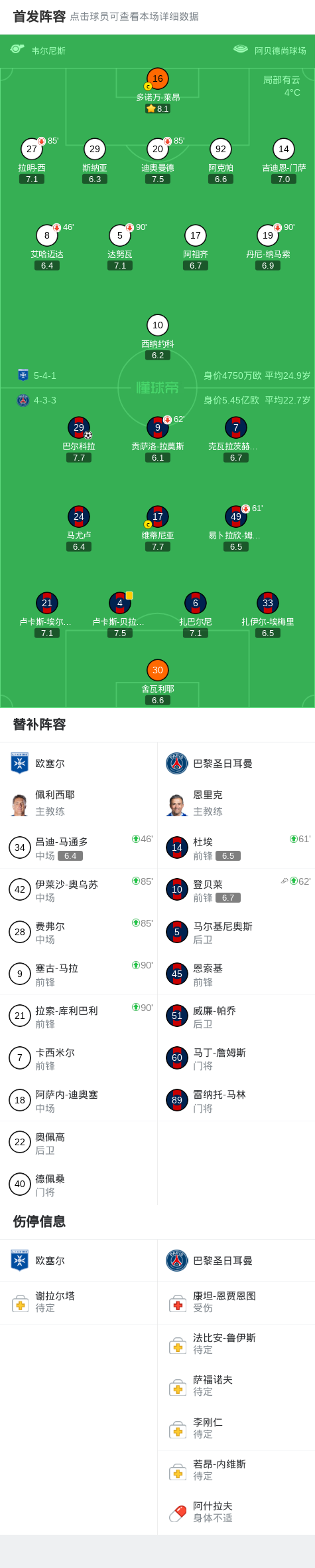 北京时间1月24日,法国足球顶级联赛第19轮,欧塞尔主场对阵巴黎圣日耳曼。上半场,巴尔科拉失良机。下半场,登贝莱助攻,巴尔科拉单刀破门。全场比赛结束,巴黎1-0击败欧塞尔,暂时登上法甲积分榜榜首。关键事件第80分钟,登贝莱助攻,巴尔科拉单刀破门,巴黎1-0精彩瞬间双方球员握手致意,比赛马上开始第2分钟,欧塞尔后卫回传送大礼,不过巴尔科拉射门被扑出第20分钟,...
